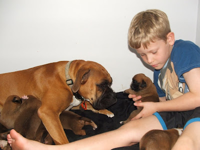 Yai Yai and Grandys boxer pair Lexie and Archer are the proud parents of 10 puppies!!! We have had soooo much fun having visits with these pups. 5 girls and 5 boys and lots of work!! We have had constant requests to bring one home to stay - but I think we are crazy enough already.