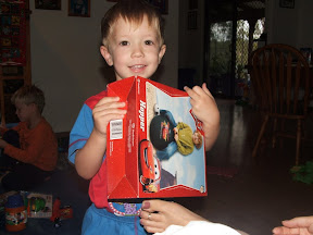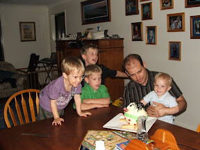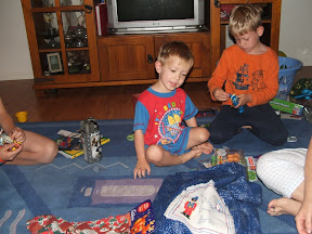 He enjoyed ripping into his presents, probably not as much as the other 3 did. Mummy did her thing and made a Humpty Dumpty cake and all the boys were suitable impressed and enjoyed carving him up and picking which body parts to eat!