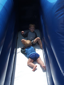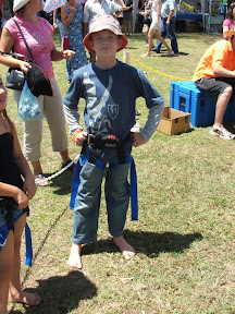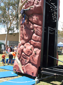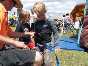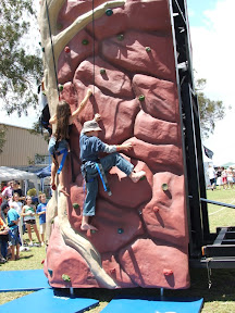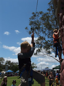 At the racecourse markets today the boys thought they would take on a rock climbing wall to try an ring the bell 8 metres up! So both Daniel & Lachlan kitted up.
