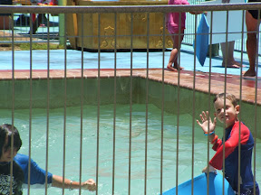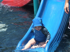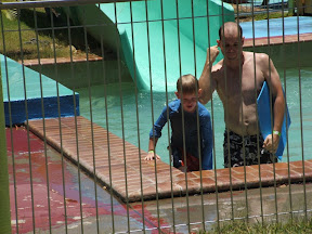 Daniel made it up to about the 6 meter mark before his fingers wore out on him. It seemed to be as much fun coming down as it was going up.