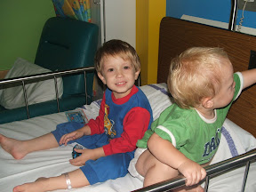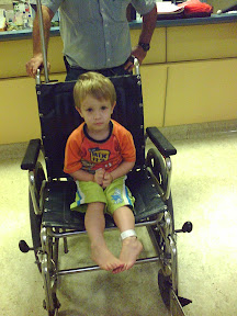 His Doctor decided to keep him in overnight for observation so Noah got a wheelchair ride.