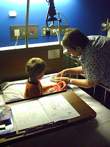Jeff stayed in hospital overnight with Noah, who did not appreciate hospital food, he wanted his 'porj" short for porridge, however Joshua did not mind and just helped himself to Noah's leftovers.