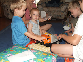 Joshua turned 1 today. How fast the year fast gone. He is very advanced in all he does for his age - but we are not surprised as he wants to keep up with the big boys! Josh is a truely delightful baby and the boys all love him, he lights up and harasses them with enthusiasm!