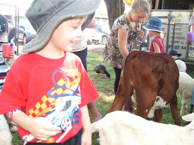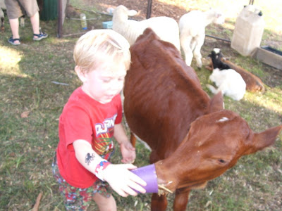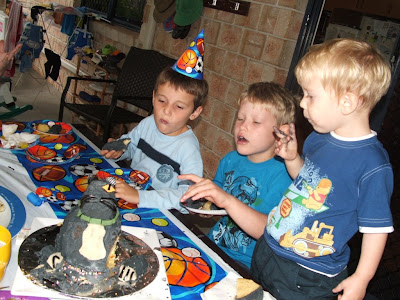 We had a morning tea party at home to celebrate - in the pouring rain - didnt slow thé kids down. Josh was very impressed with his Diddles the cat cake, the food colouring had them flying!! Daniel and Jake below were very impressed when Josh finally beheaded Diddles (Boys!)