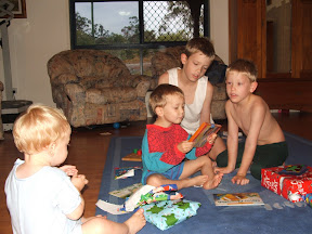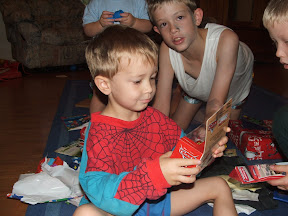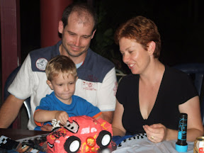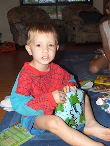 Noah is now 3! He was up with the sparrows as usual and had a ball ripping open all his presents. His brothers were disappointed that he has grown up so much because he can open his own presents rather then them doing it for him. He was very impressed with his Lightning McQueen and Dora the Explora toys/games.